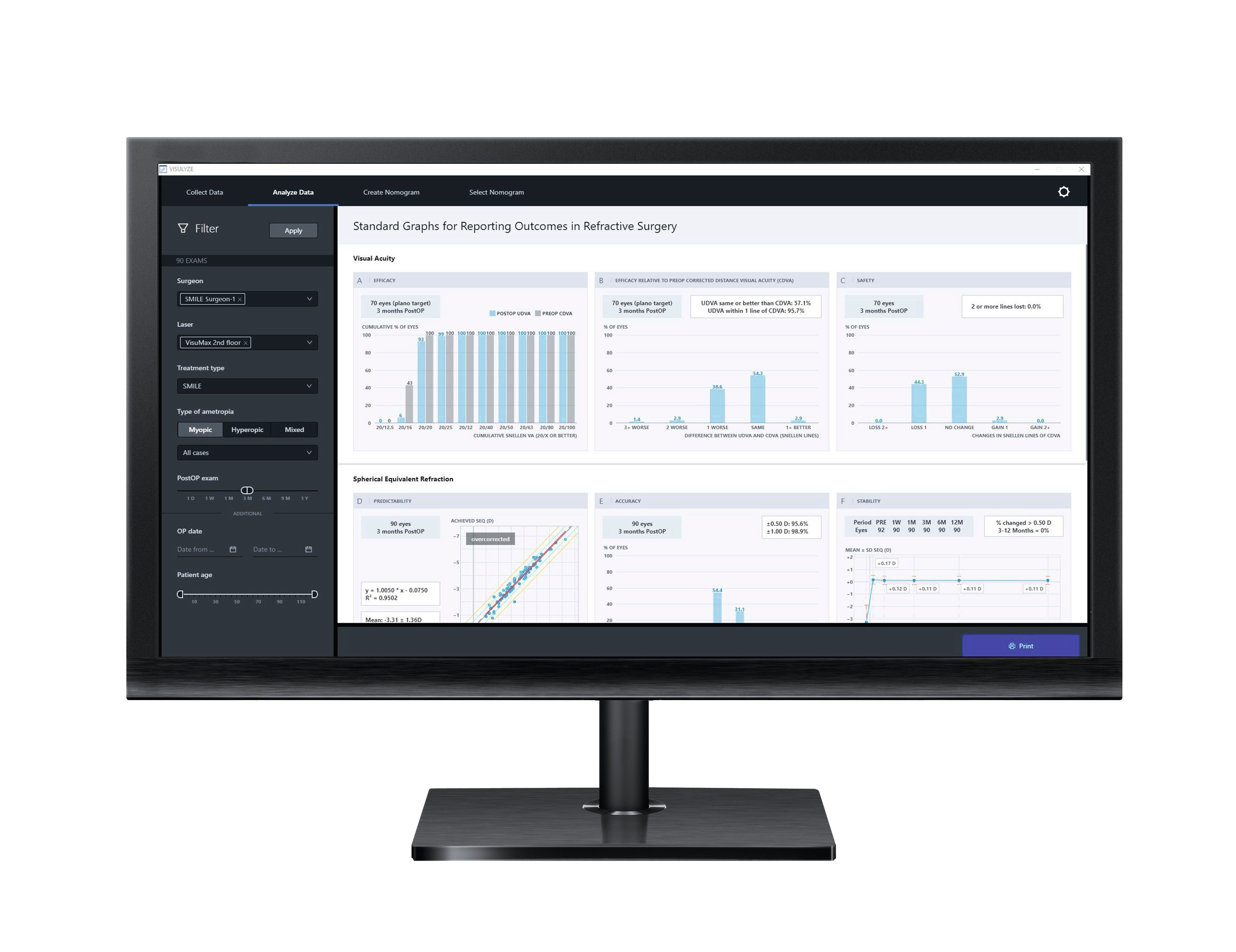 • VERBESSERTE VORHERSAGBARKEIT: Aktualisierte ZEISS VISULYZE 1.2-Software zur Datenanalyse und Erstellung personalisierter Nomogramme, jetzt mit ZEISS FORUM-Integration für eine bequemere und effizientere Nomogrammerstellung innerhalb des ZEISS Corneal Refractive Workflow.