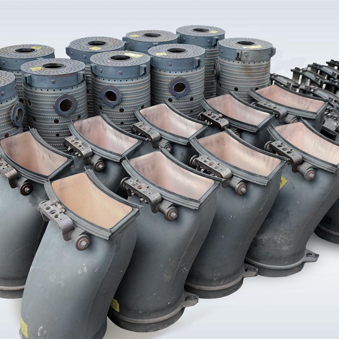 These components safeguard the combustion chamber and the housing components of the hot gas path, ensuring structural and thermal stability during operation. They are evenly distributed in a 360° configuration and mounted in rows according to the design specifications and predefined locations. Constructed from high-temperature resistant materials such as ceramics or cast metal alloy coated with ceramic layers, only parts that meet the precise geometric dimensions and proper coatings can guarantee smooth operation.