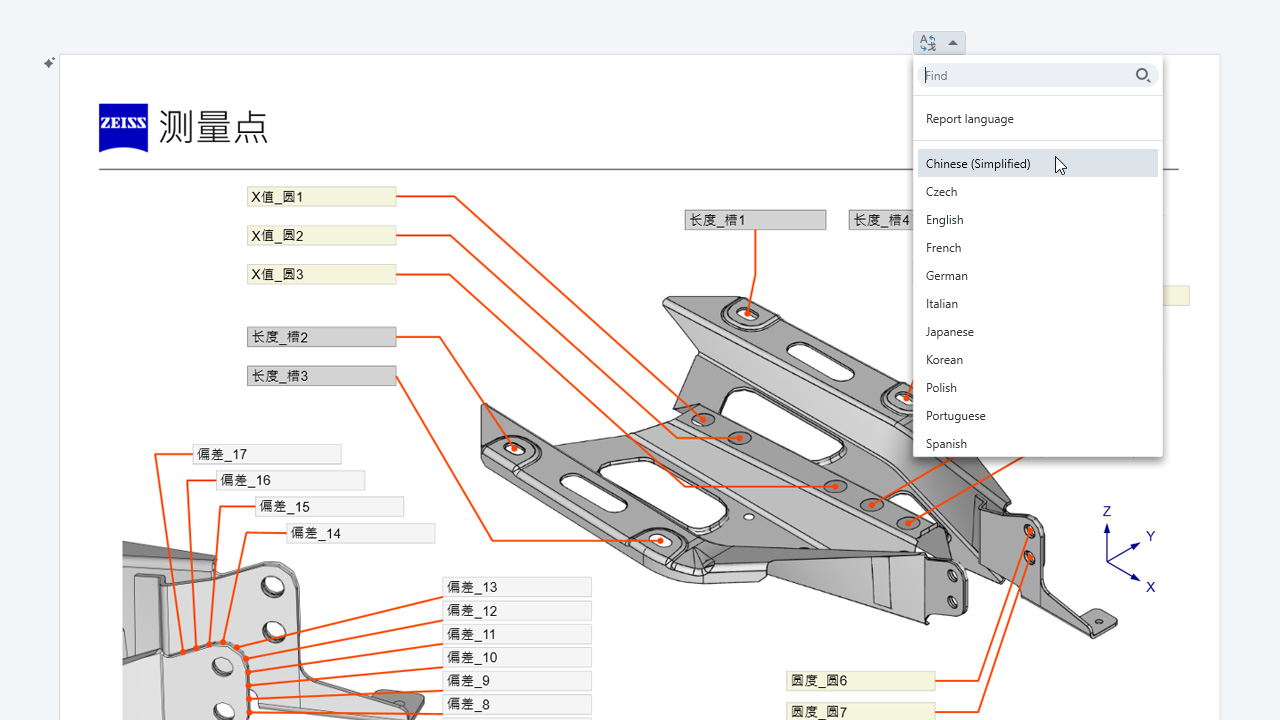 Introducing seamless translation capabilities with the power of GenAI engines1 in ZEISS PiWeb. With this release there is no need to translate reports to different languages—our integrated translation feature handles it for you. Instantly open reports in your preferred language with just a click. Experience enhanced productivity with this new translation feature!