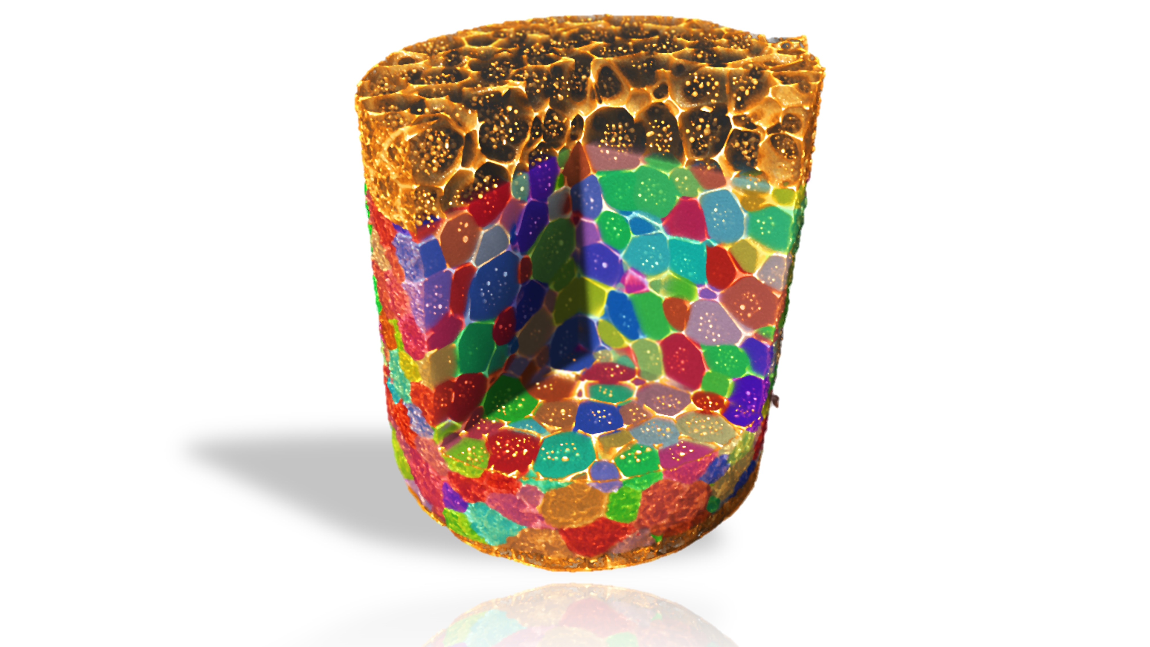 This 3D grain map of an aluminum copper sample highlights the sample representivity ZEISS Xradia CrystalCT provides.