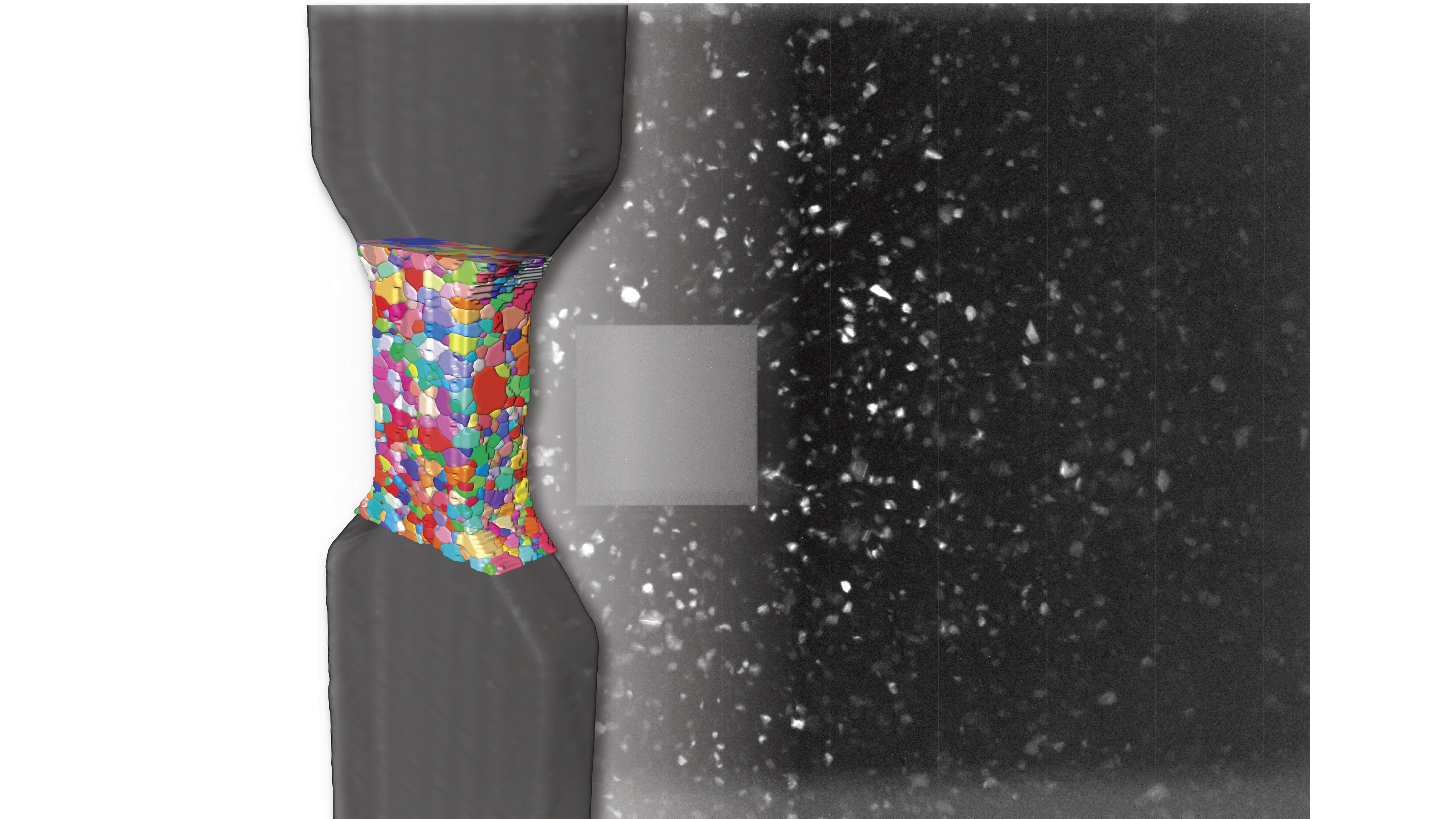This 3D grain map of an aluminum copper sample highlights the sample representivity ZEISS Xradia CrystalCT provides.Sample courtesy of: M. Kobayashi, Toyohashi University of Technology, Japan. 3D grain map of an Al-4wt%Cu sample with gauge section dimension of (length) 1.25 mm, (width) 1.0 mm and (thickness) 0.5 mm. Sample scanned using helical phyllotaxis HART.