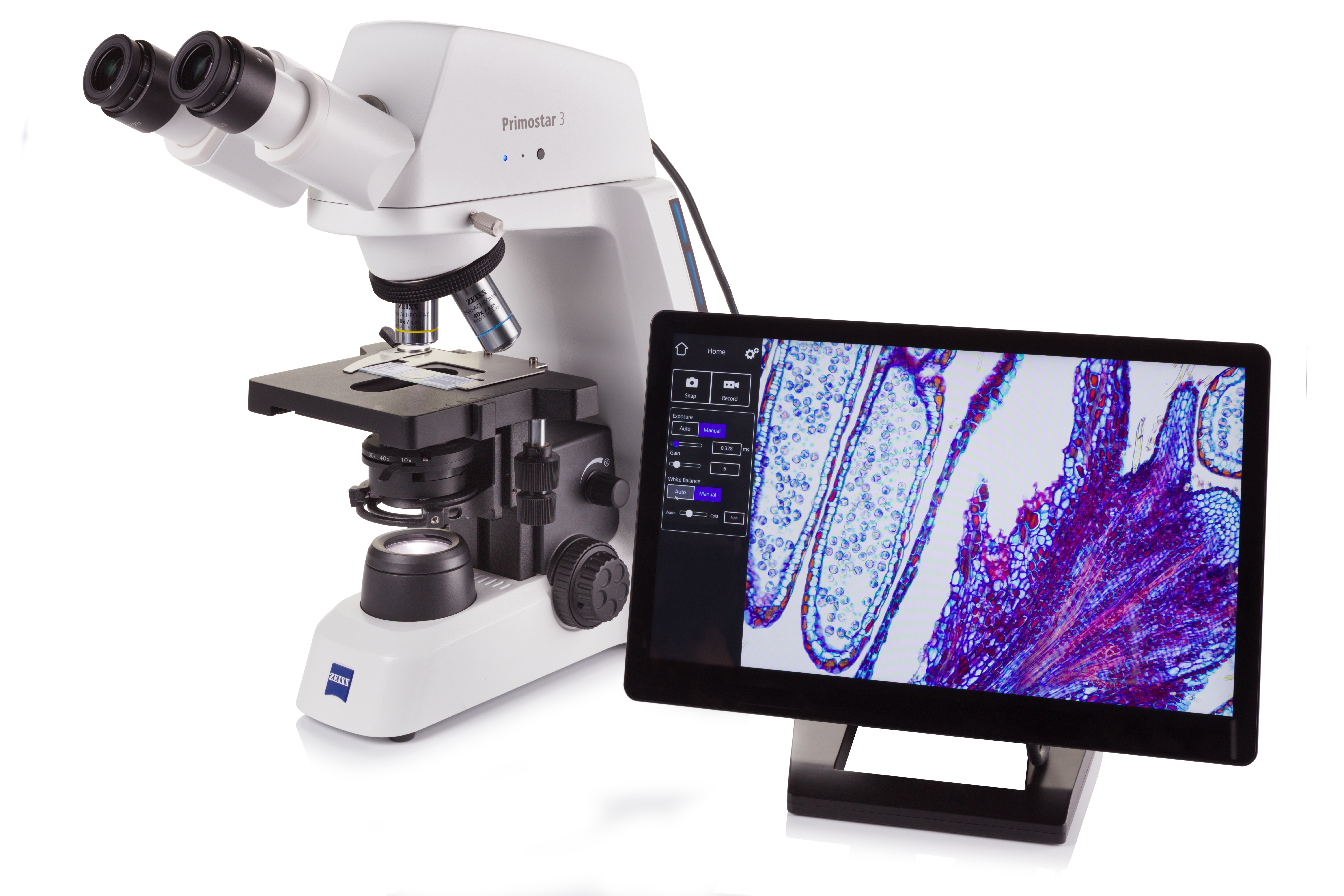 ZEISS Primostar 3 offers the advantages of an integrated 8-megapixel microscope camera and a number of additional digital interface options. With the imaging app ZEISS Labscope, it is easy to connect microscopes in classrooms to each other. It makes it easier than ever before to snap and share microscope images via HD monitors or projectors. The optional software module Labscope Teacher helps to manage and organize each class. With its digital options, ZEISS Primostar 3 is setting new standards in modern digital and remote teaching.