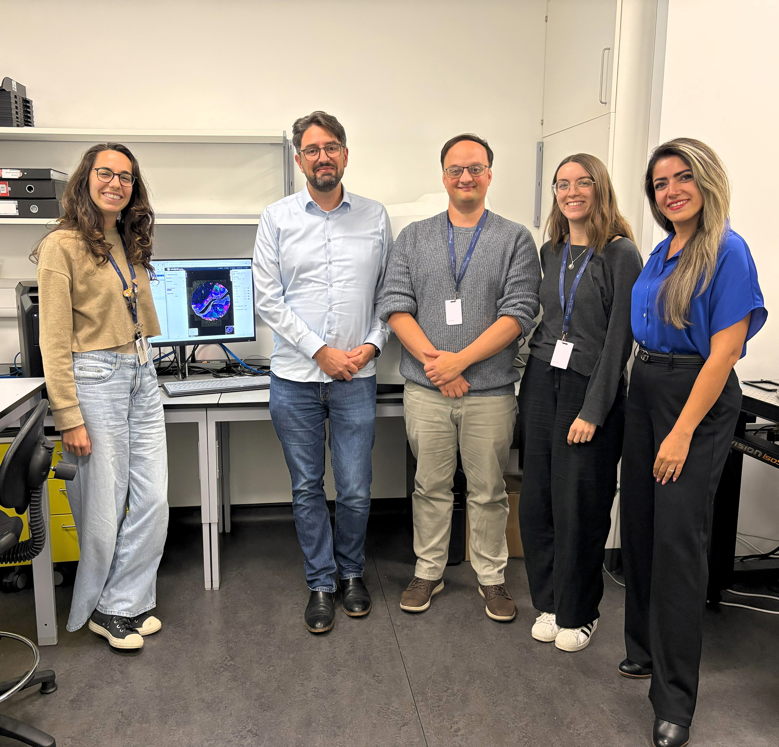 Driving innovation in spatial biology – from left: Giulia Tagliavini (CLS), Moritz Widmaier (ZEISS), Christopher Mills (CLS), Lydia Blackburn (CLS) and Sherry Derakhshani (ZEISS).