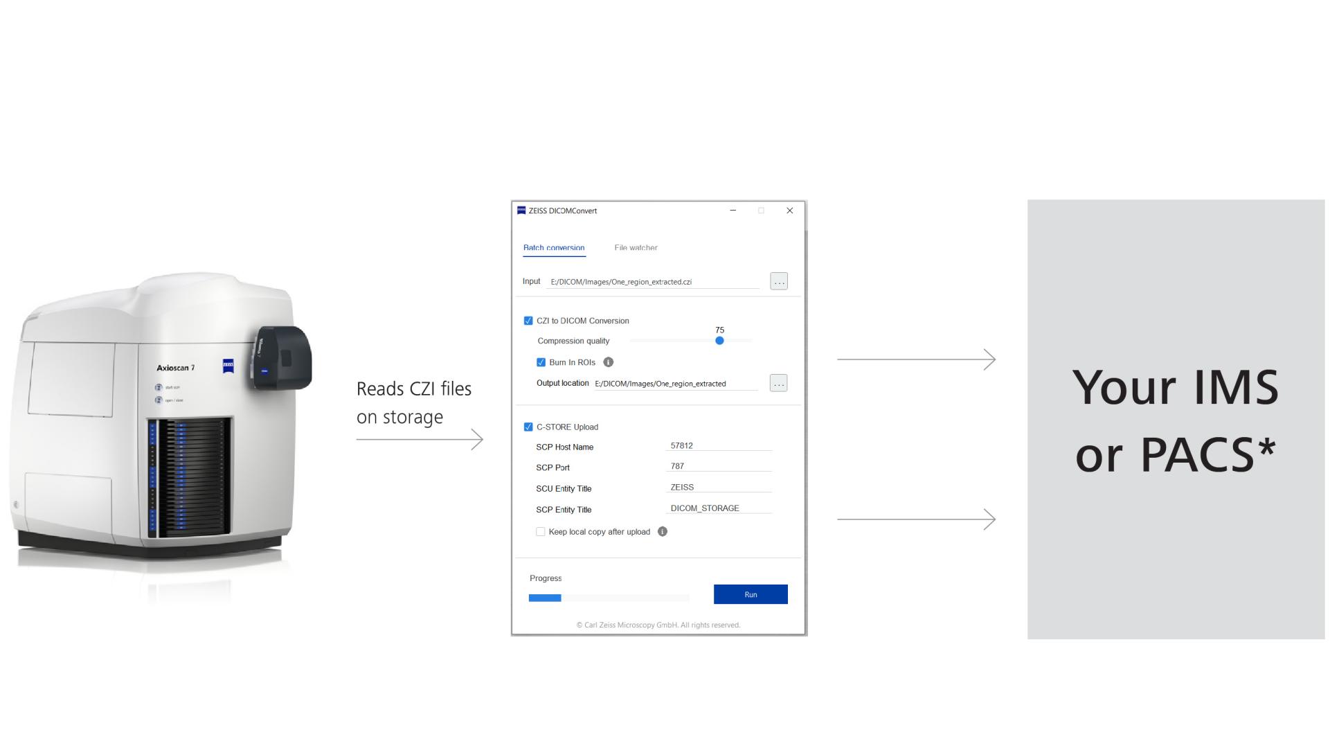 * It’s recommended to run the ZEISS DICOM Converter on a separate PC to not slow down image acquisition. Compatibility tested with Sectra / Proscia Concentriq
