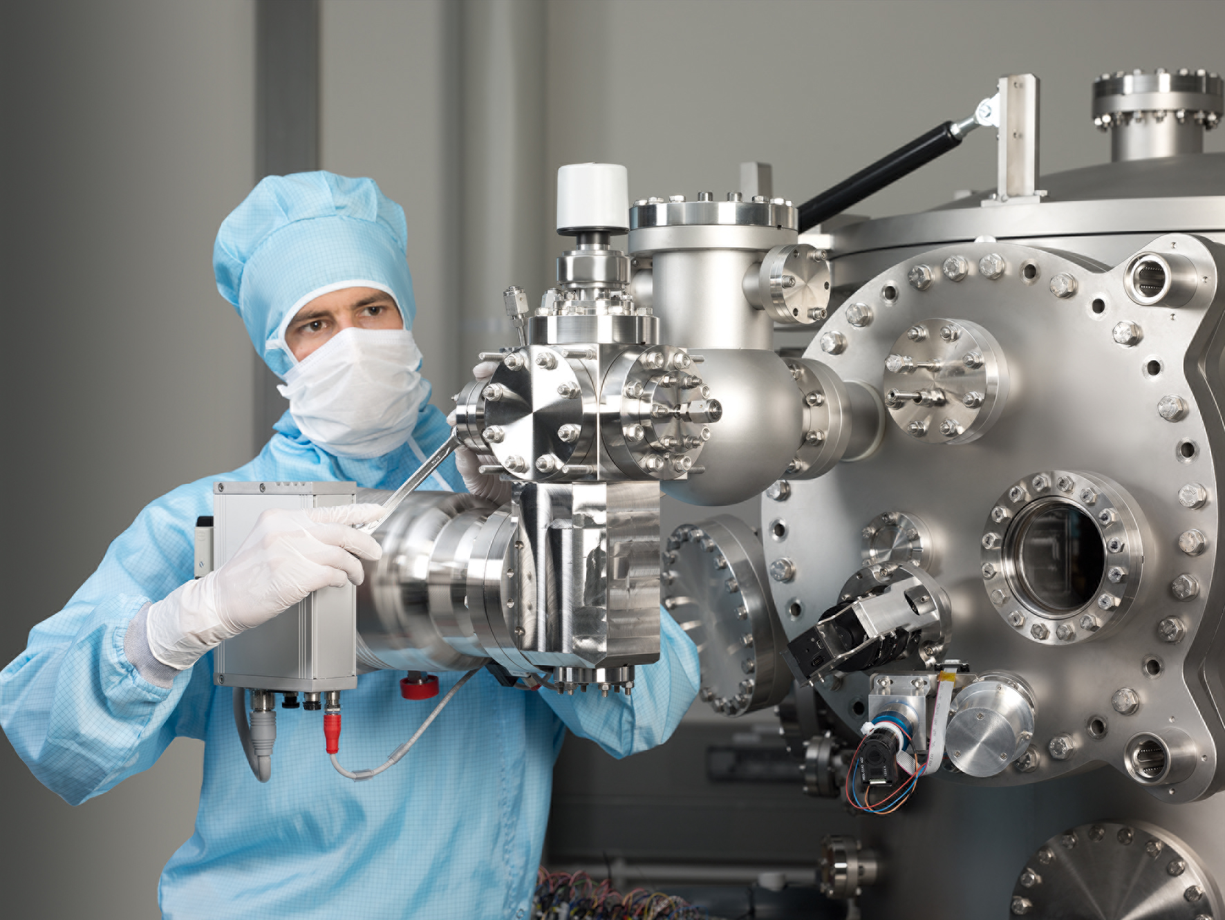 • An employee of ZEISS works on the SMT technologies in a cleaning room