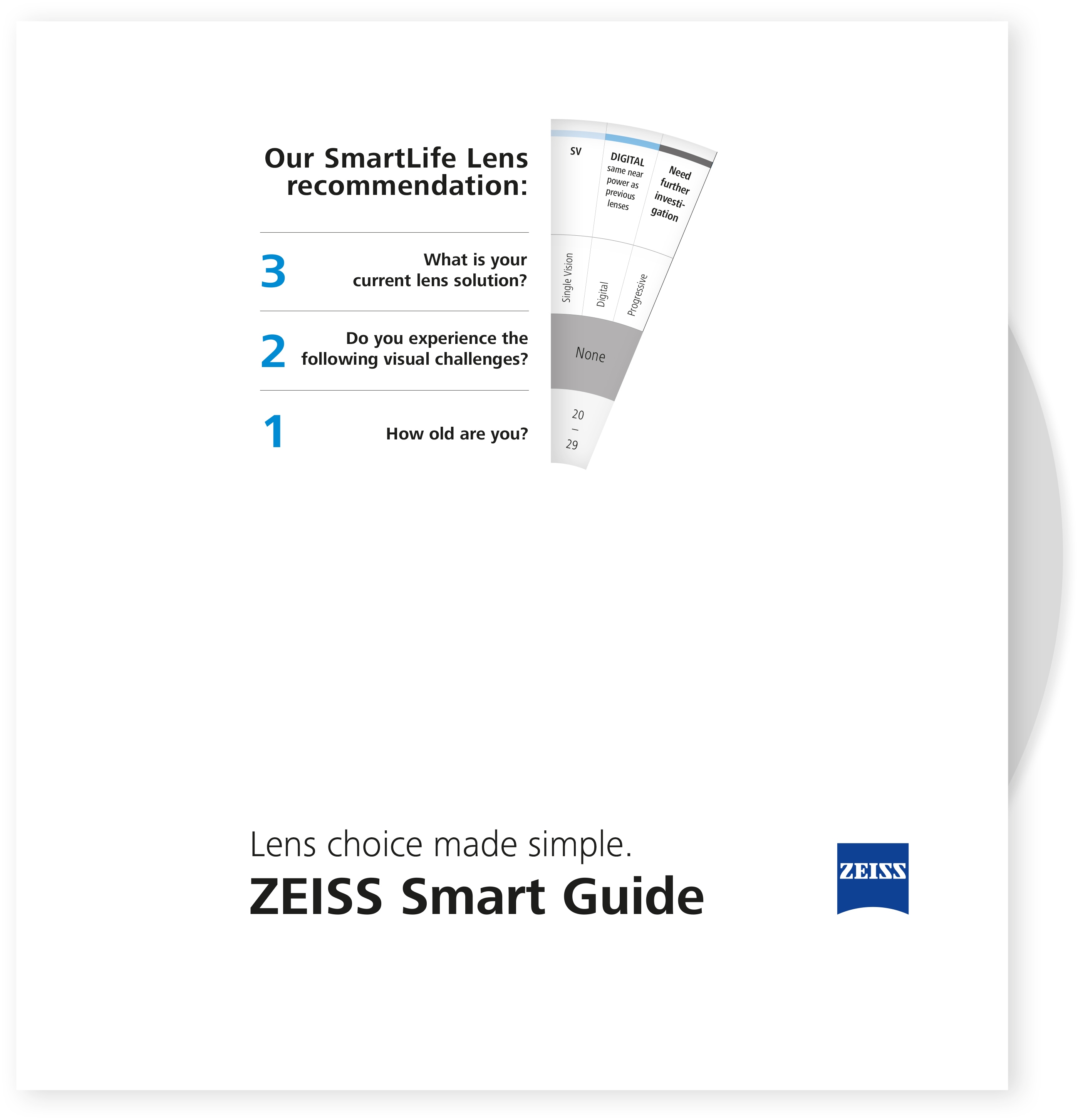The analog version of the ZEISS Smart Guide: Only three questions lead to a lens recommendation.