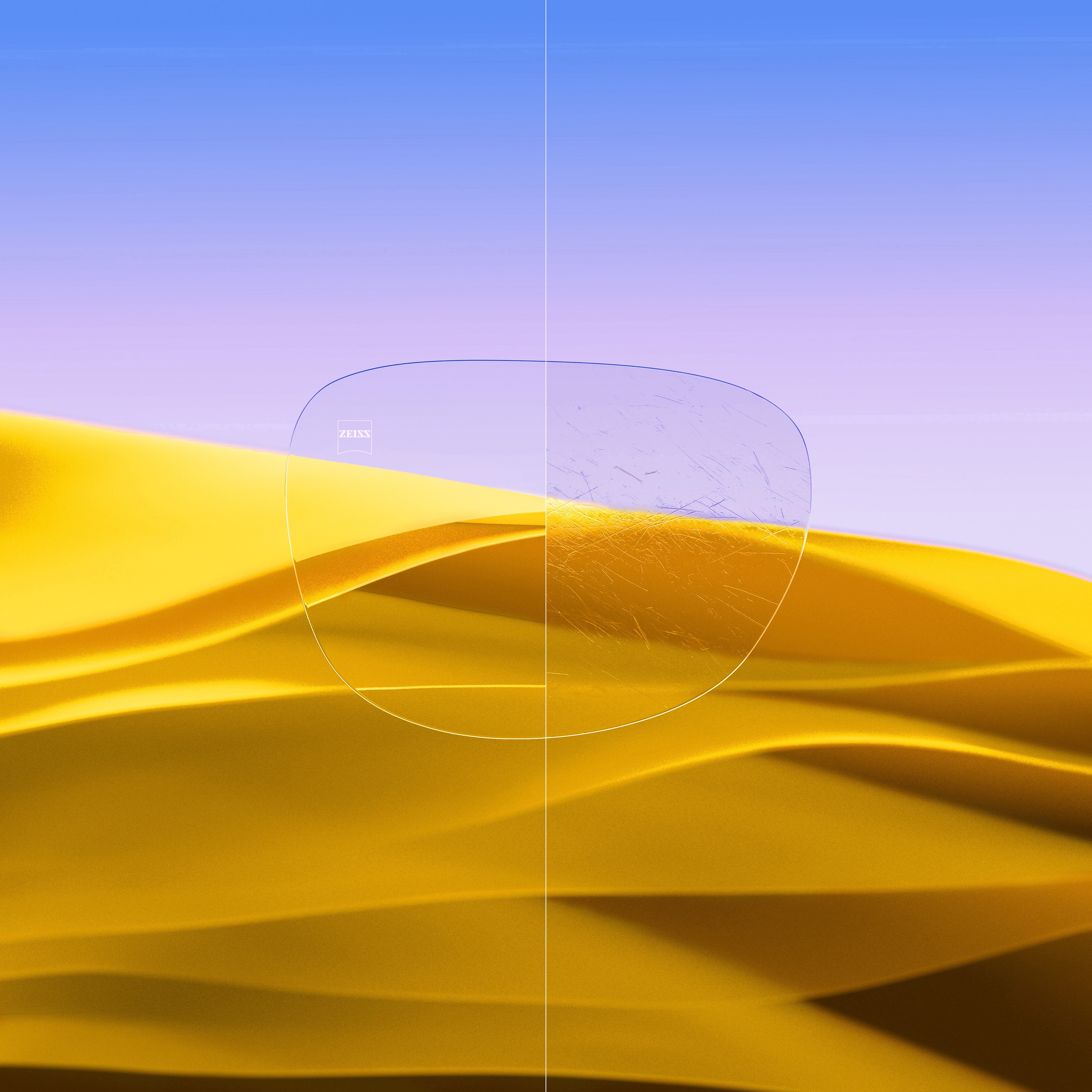 In this split lens visual it becomes clear: ZEISS DuraVision Gold UV offers upgraded durability, thanks to a greater scratch resistance