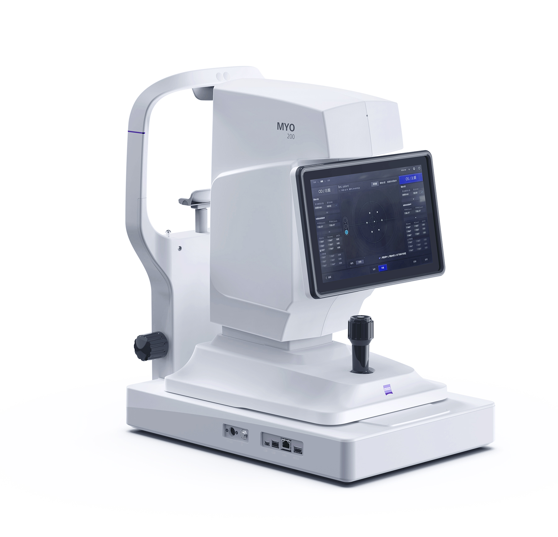ZEISS MYO 200 enhances user experience and efficiency with its intuitive interface and workflow, making operation easy for all users. The device features a user-friendly, 10-inch touchscreen and a one-handed operating joystick, providing intuitive control, space efficiency, and precise operation. Users can choose between automatic and manual modes, offering flexibility for fast, one-click measurements as well as for handling challenging eye conditions like cataracts.